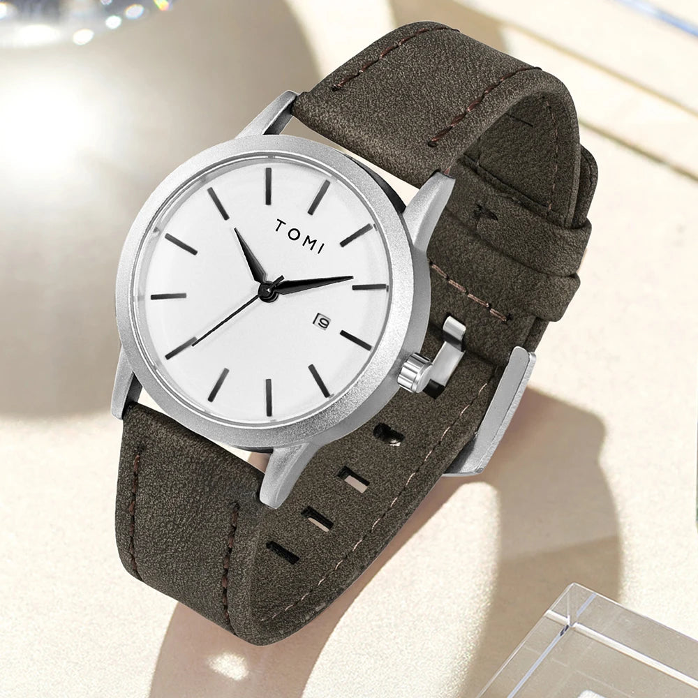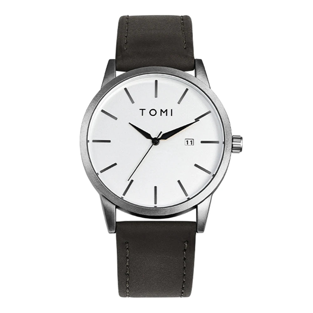 TOMI introduces the T081 Pillar Statement, a timepiece crafted with Alloy case and PU band. This round watch features complete calendar functionality with numberless display and precision quartz movement. With 3Bar water resistance and glass crystal protection, it delivers reliable daily performance. The slim 8mm profile combines understated elegance with practical versatility.