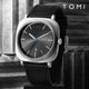 TOMI introduces the T084 Nebula Surge, a timepiece crafted with Alloy case and Leather band material. Featuring a complete calendar function with a distinctive square case shape and numberless display, this watch presents a bold architectural design statement. Powered by precise Quartz movement and 3Bar water resistance, the glass dial window ensures lasting clarity for contemporary everyday style.