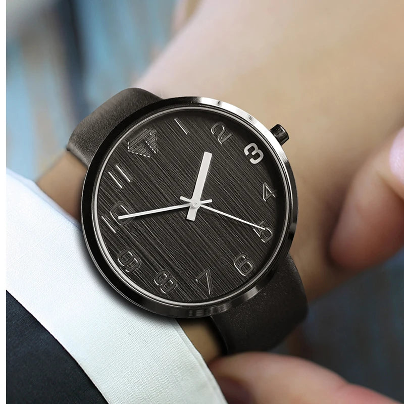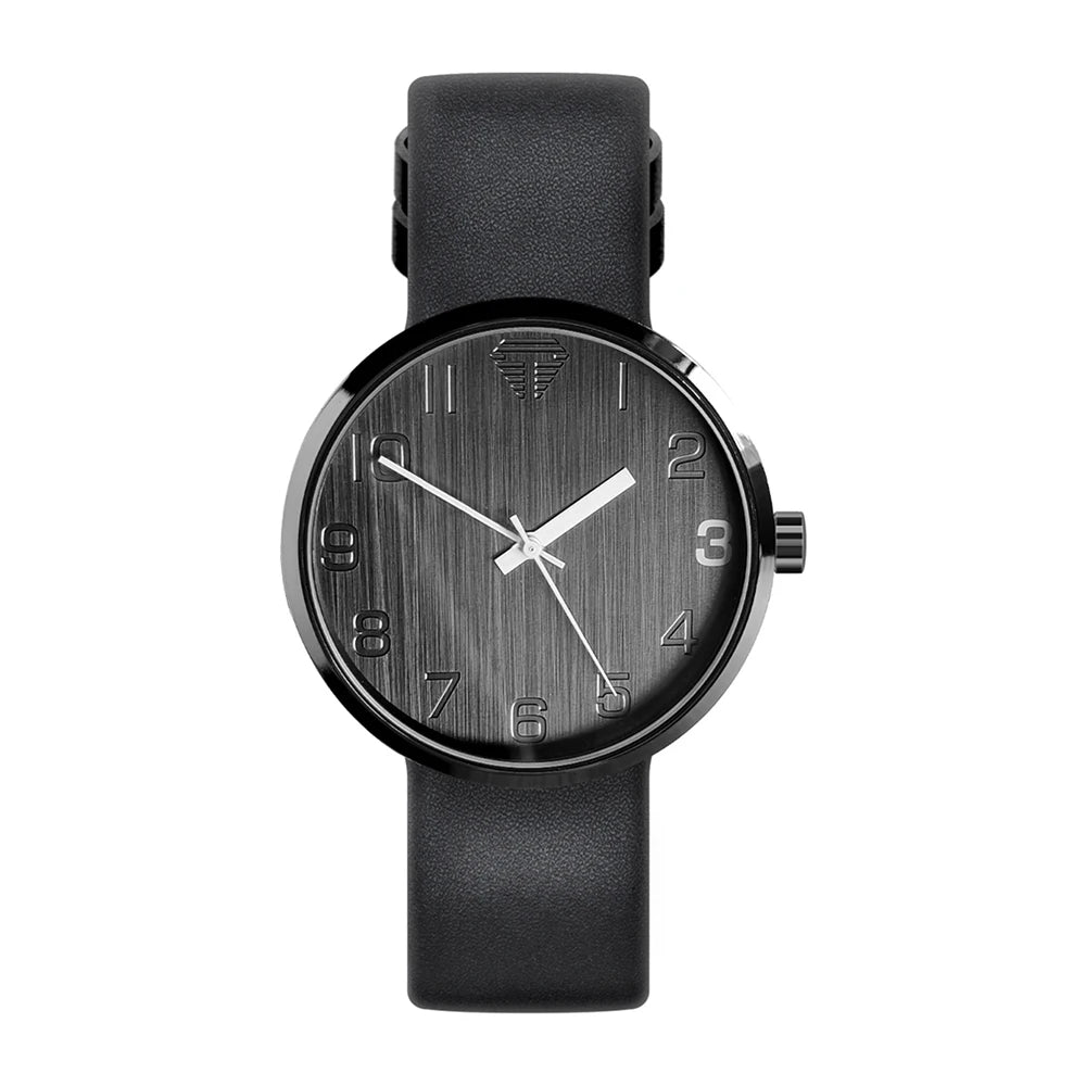 Black watch with a textured face on a white background