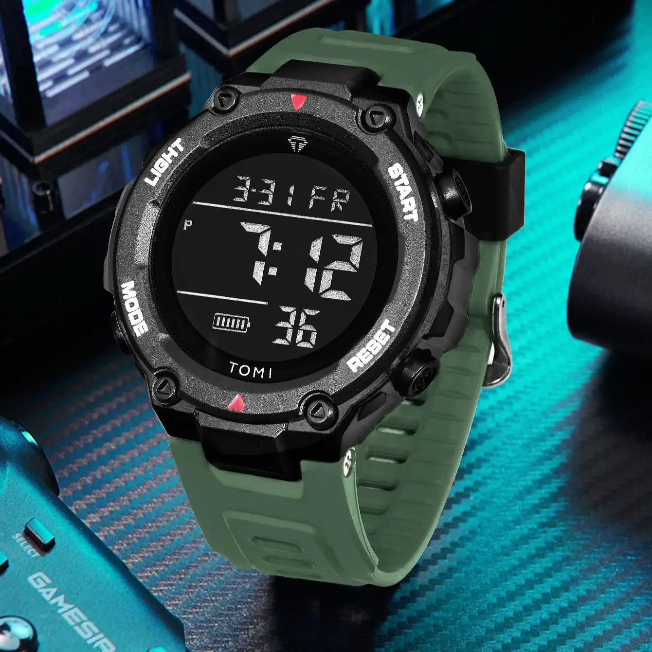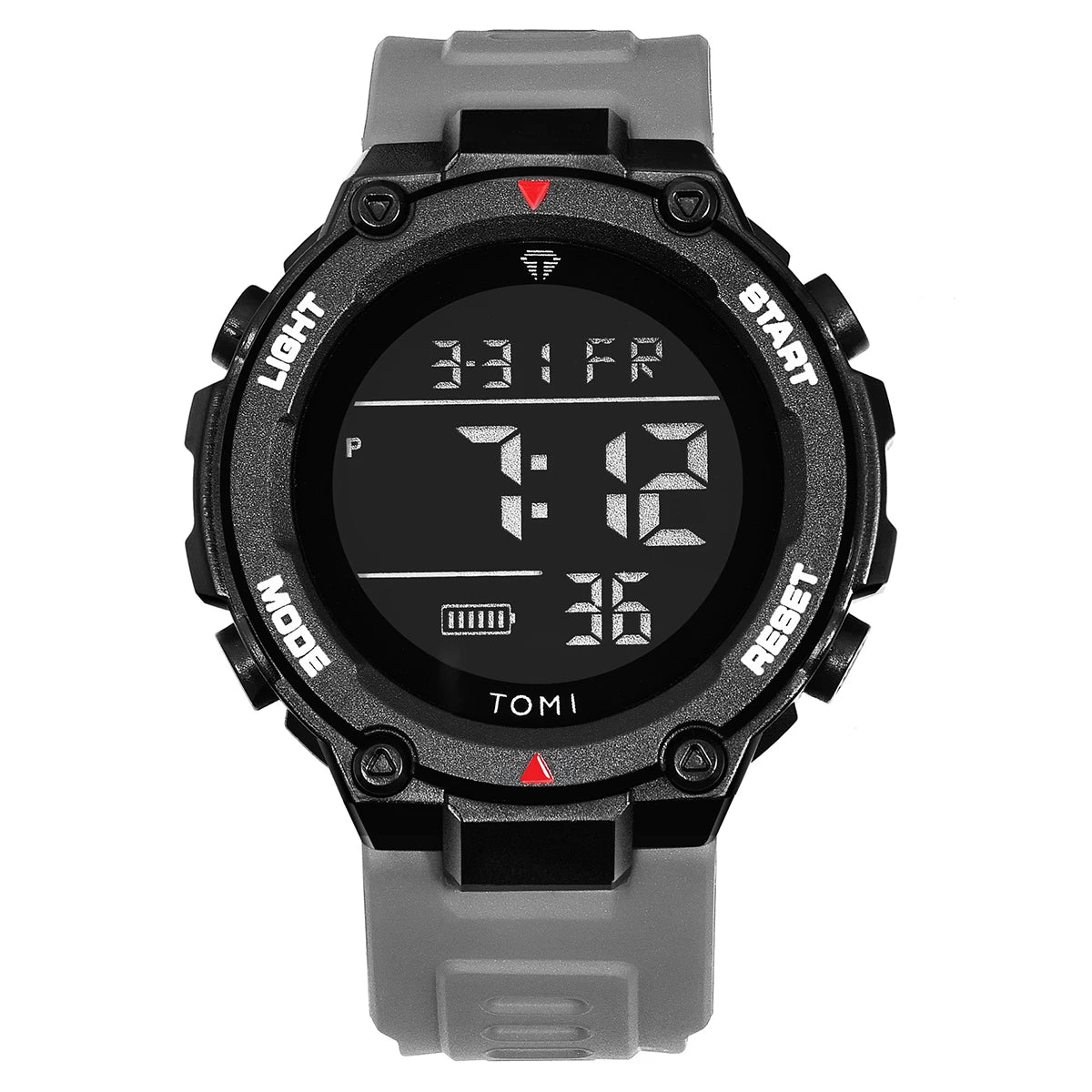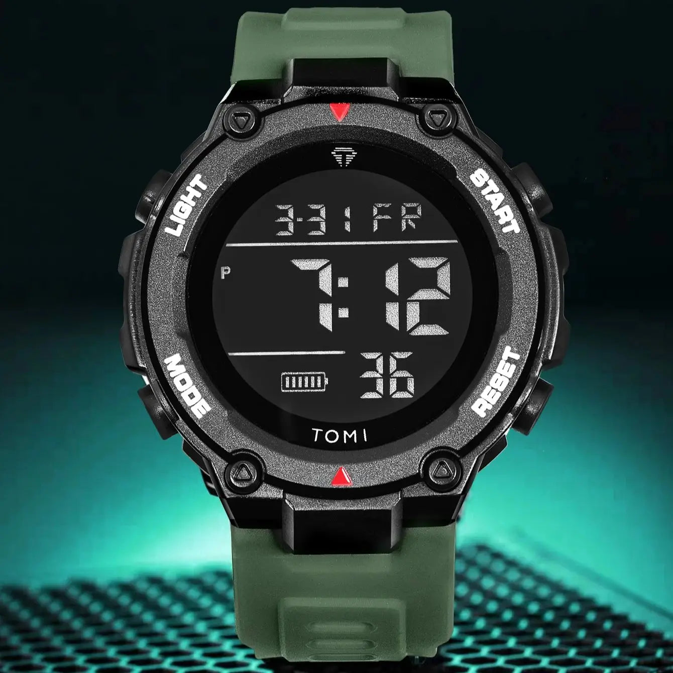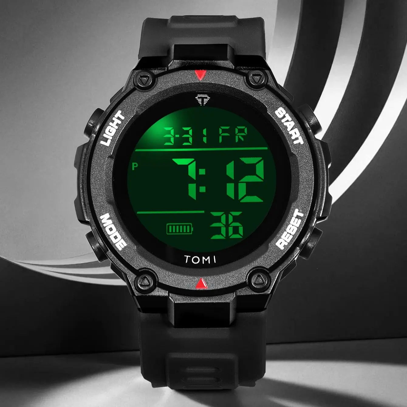 TOMI introduces the T205 Tactical Bastion, a timepiece crafted with Polyester case and PU sport band. This digital watch features chronograph functionality, luminous display, and week display for active lifestyles. Powered by digital movement with 3Bar water resistance, it combines durability with practical functionality. Built for those who demand reliable performance in any environment.