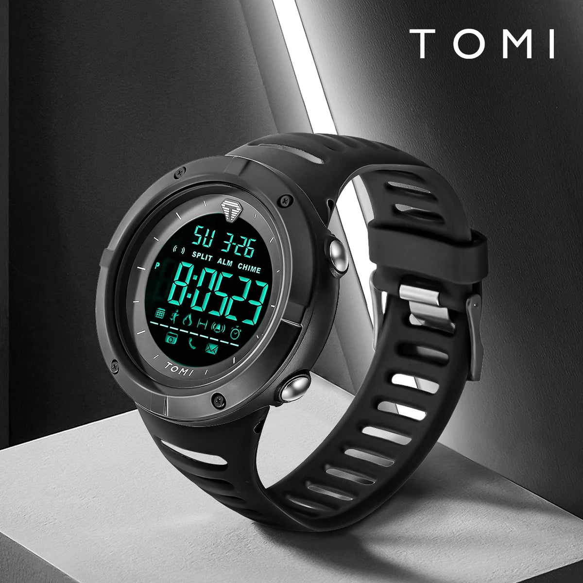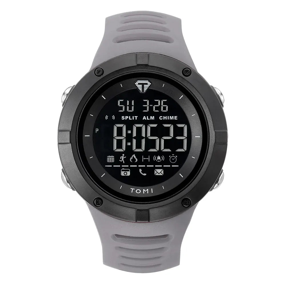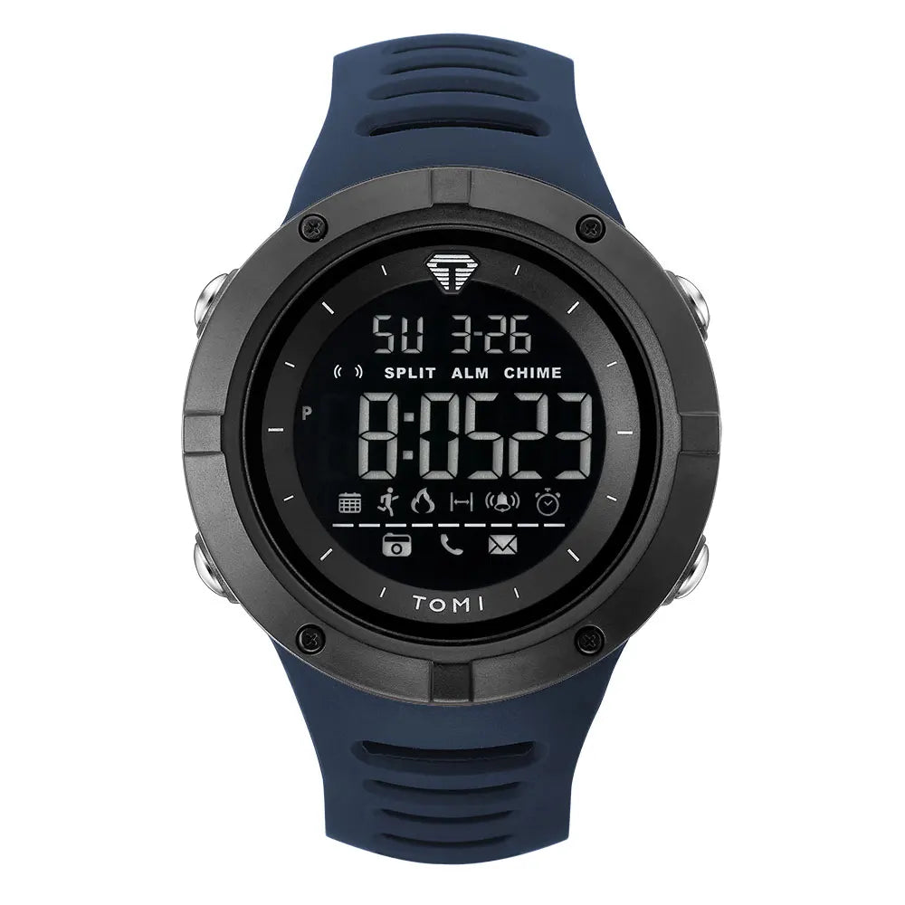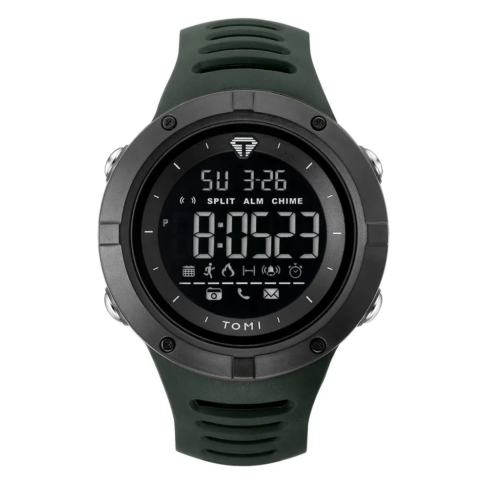 TOMI introduces the T210 Bastion Thrust, a timepiece crafted with Polyester case and PU band. This advanced tactical digital watch features a comprehensive suite of functions including luminous display, steps tracker, complete calendar, alarm, and week display, all housed in a commanding 50mm case with protective hexagonal bezel and Digital movement with 3Bar water resistance. The robust 15mm case thickness combined with 24mm wide sport band delivers maximum presence and durability, making it the ultimate companion for fitness tracking and outdoor adventures.