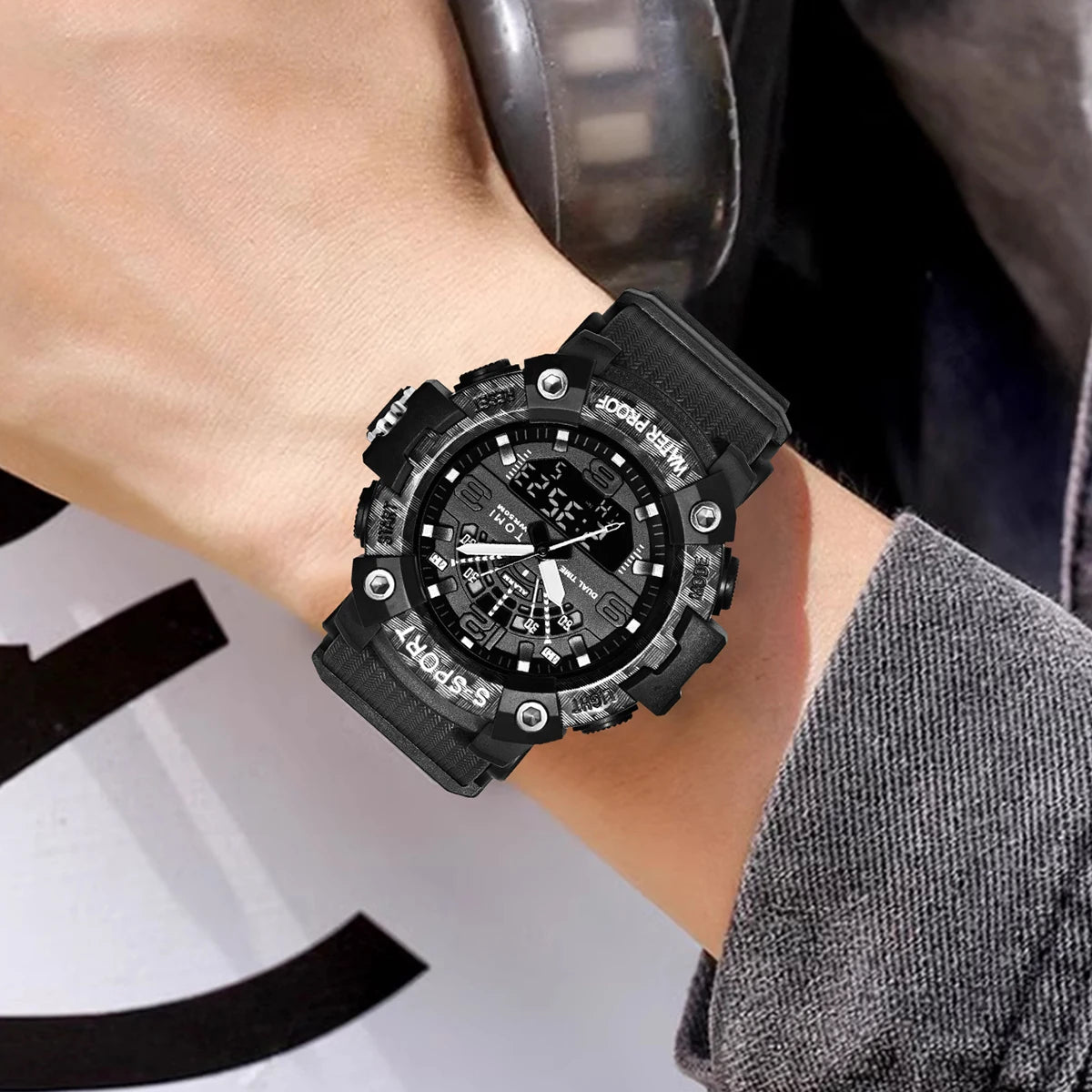 TOMI introduces the T233 Mudmaster Chronicle, a timepiece crafted with Polyester case and PU band. This extreme tactical watch features an advanced hybrid analog-digital display with luminous function, repeater, complete calendar, alarm, and week display, all housed in a fortress-like 50mm case with six-point protective cage construction and Digital movement with 3Bar water resistance. The commanding 17mm case thickness combined with military olive and black dual-tone sport band delivers maximum shock protection and tactical aesthetics, representing the ultimate choice for military operations and extreme outdoor conditions.